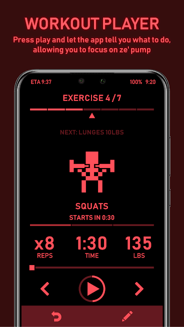 321FIT for Android is an easy to use, simple app that lets you workout the way you want. The app has custom workouts or you can create your own workout. Create and set exercises for your workouts. Set the amount of time and the number of repetitions per exercise and you get going. Press the play button to start your exercise.