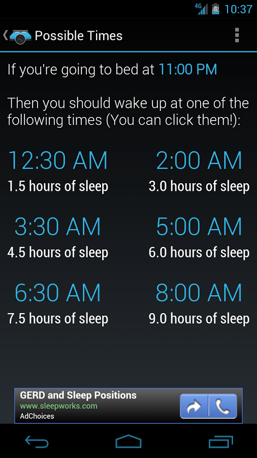 90night: SleepyTime Calculator app for Android is a sleep cycle time calculator that helps you calculate the total time that you need to sleep. Its main purpose is to let you calculate the ideal time to hit the sack and wake up. That is, by doing so, you can refrain from waking up in the middle of one of those sleep cycles and as a result, feeling ‘groggy’ throughout the day. From a user perspective, simply enter the time you’re going to hit the bed or the time you’re going to wake up, and the app will display the best times to wake up or go to sleep. The app also has a feature wherein it automatically sets up alarm for your sleep/wake up time.