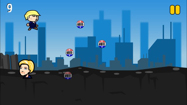 Typical of endless runner games, Donald Trump Jump for iPhone does not have a logical finish. You can keep going as far as you can until you make a mistake. The visuals are fun. The cartoon caricatures of Trump and other candidates bring a smile on your face. Trump features his signature yellow comb-back hairstyle, navy suit, white shirt and red tie. The background score is overly dramatic and foreboding, much like Trump’s candidature. The game is also stable.