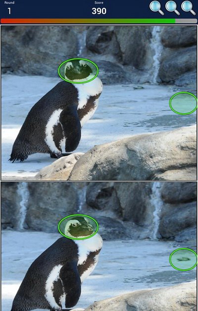As soon as you point out the five differences, you’ll be presented another set of photos and so on until the time is exhausted. Once the game ends, your total score is calculated and that can be submitted to a high score table. To make the challenge easier, you have the option to purchase power ups that will highlight the location of change, gives you little more time to search and let you skip a particular challenging or difficult round. These power ups require tokens that are available as in-app purchases. Further, an HD upgrade can be bought through in-app purchase. The app also offers Facebook integration to facilitate social play.