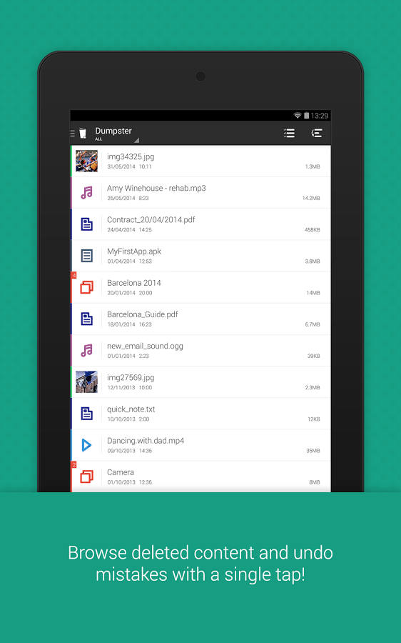 You can transport any files to Dumpster using “send” or “share” from any file manager or any as such gallery app out there. Conduct scheduled auto clean of deleted items. You can also hope to protect your privacy with the help of a special lock screen as well as access restriction. This app has been mainly designed by the talented minds in the purpose for the purpose of making mobile phone owners, more comfortable about their apps. If they have a habit of pressing the delete button frequently, then Dumpster Image & Video Restore app will be the protector of important files.