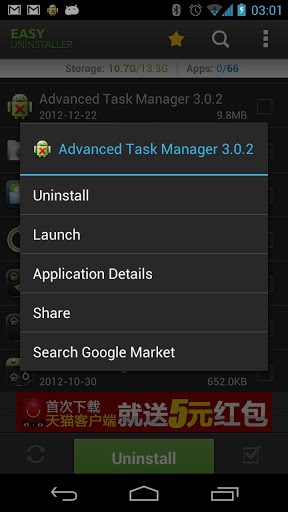 Easy Uninstaller app for Android makes you realize that uninstalling an app is as simple as installing one. You just got to select the ones you wish to remove from your phone, and Easy Uninstaller will do the rest. Its coolest feature is the ability to select and uninstall multiple apps at a time. The ads at the bottom of the screen are a bit of an annoyance to say the least. Verdict: Keep it handy if you install/remove apps regularly.