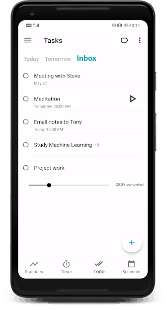 To keep you engaged and focused, the Engross Focus Timer, To-Do List & Day Planner Android App employs a unique way, Hit me when you are distracted pop ups, that works the best. The timer is completely customizable and you can increase the duration of the session or reduce it, or, use the stopwatch to take a break. Block all apps from distracting while you work. White noise helps you concentrate better. Create recurring and progressive tasks with sub tasks and reminders. Those who work and study can use this effectively and also add a revision timer apart from the work slot.