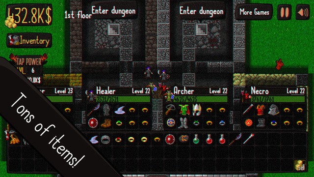 In a sense, the game play of Idle Sword is somewhat limited. Apart from equipping your warriors, selling items in your inventory and tapping ceaselessly to kill monsters when you get to higher dungeon floors, there is nothing much to do in the game. At the lower floors, you might become a spectator at times as your warriors battle it out. The graphics is below par. The colors are limited while the sprites appear pixellated at the edges. The sound effects are also average at best. The soundtrack is strangely the same for all dungeon floors, which is a big letdown. The game, however, is stable and responsive.
