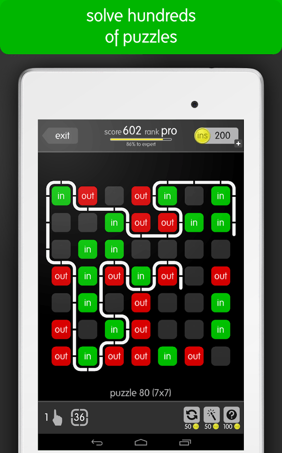 Ins and outs game app for Android is a fun time killer type of puzzler with a minimalistic design and unique game play. In the game, you’re supposed to draw a loop so that some of the blocks are in, while some are out. The blocks are marked ‘in’ and ‘out’, and you got to draw the loop that encloses all the tiles that say ‘in’. You can get ins and outs app for free. The app got a whooping 900 free levels!
