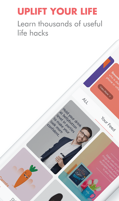 There are over hundred hacks being updated on a weekly basis and based on users choice, hack of the day is selected daily. Save as many hacks you want and you can also bookmark them to make it easy to find. Share these life hacks with friends and family through social media. Content will be personalized based on your interests.