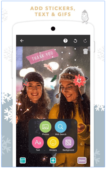 PicCollage for Android provides a great way to show off your photos. Using the app, you can combine a group of photos to an image file. It is also perfect to go with your holidays, thanks to its exclusive holiday content. You can download PicCollage app for free from Google Play Store.