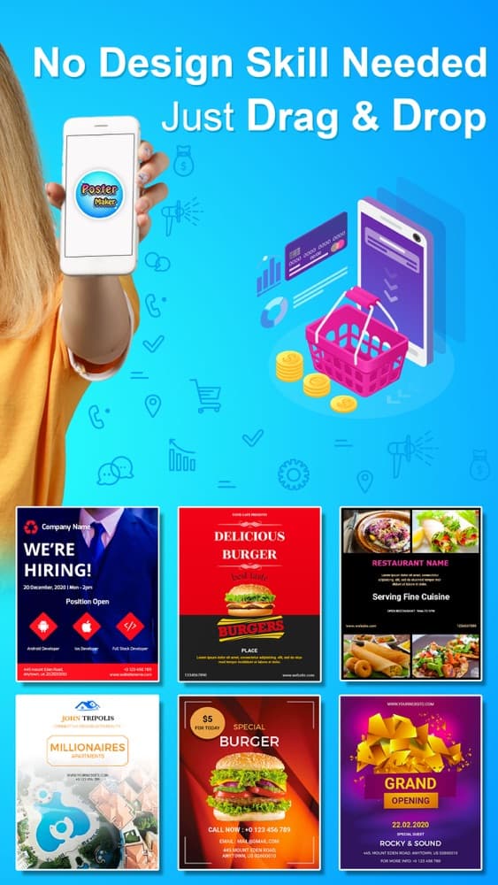 Poster Maker Flyer Creator for iPhone is an user-friendly, easy to use app that can quickly create graphical design elements. You can make stunning posters in minutes. It has over 100 ready to use flyer design and templates which is easy to use and creates desired results instantly. The templates are well categorized. It has high resolution backgrounds and stickers. You can create posters and logos for any social media platform.