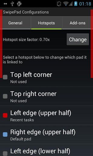 In terms of functionality, Swipe Pad: Hyperspace Jump provides what it promises. You can launch any of those 12 apps while you are still in another application/software. You can change the size of the hotpsot to suit your comfort level from the ‘Hotspot size factor’ in the Hotspots tab. Android Swipe Pad: Hyperspace Jump application seems to be soft on battery life. But then the app is quite light weight at just 720kb. On an apparent downside, you have only one usable pad and nine available hotspots. That is, while you can launch your pad from anywhere, you have only one of them and 12 boxes. You have no option whatsoever to create another pad and hence 12 more boxes.