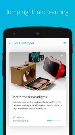 In Udacity Android app, the programs are developed hand-in-hand with corporate sponsors and its credentials are built and recognized by industry leader to advance your career. The course material is developed with industry experts like Facebook, Google, Amazon, and so on. Udacity has both self paced courses and timed programs. Free courses will have to be done without any personalized coaching, lacks feedback or the sense of being in a classroom. Paid courses include feedback from Udacity trainers and a certificate of completion as well. Personalized learning experience allows you to access classroom, connect with your mentor and track your progress. Learners can download classes and content before hand and can go through them in leisure.