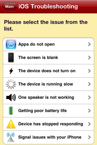uFix app for iPhone offers simple solutions to the common iOS related troubles. If your iPhone got issues such as apps not opening, blank screen, poor battery life, signal troubles, slow response etc, uFix for iPhone could provide you with relevant answers. There are not too many things listed in the app. But what it got is all relevant in the context of a common man user. The user interface is very simple and easy to navigate around. There are not many pages to wander either. There are only two sections: ‘iOS troubleshooting’ and ‘repair your apple device’.