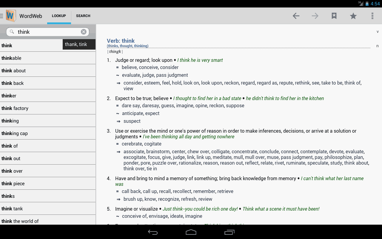 WordWeb for Android provides a web of information based on the user input of a particular word. Once after successful installation, launch of the app begins with an idyllic interface in which a user can type in the word one is looking for. Once done with the input, WordWeb shows the word, not only with the definition, but one will get the text pronunciation, synonyms, and then more information which makes this app spectacular as compared to its rivalries. The app bestows upon a huge database of 285000 words, phrases and derived forms, 225000 word sense definitions, 70000 usage examples and 85000 text pronunciations. The database includes proper nouns and common abbreviations in addition to English vocabulary such as LOL, Oxford, ROFL, Webster, UNHCR, etc.